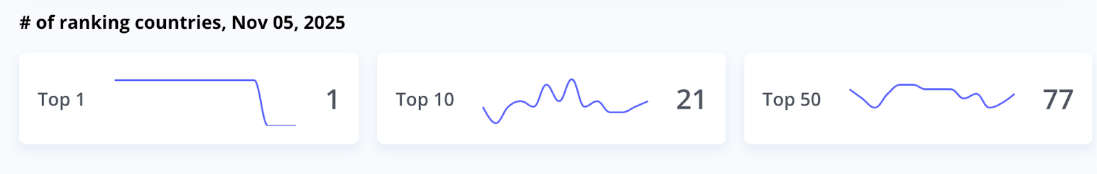 - Top 1 β number of countries where your app holds the #1 position in its category across a specific period.