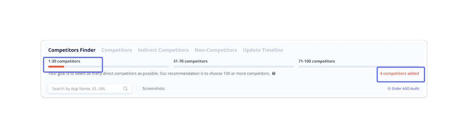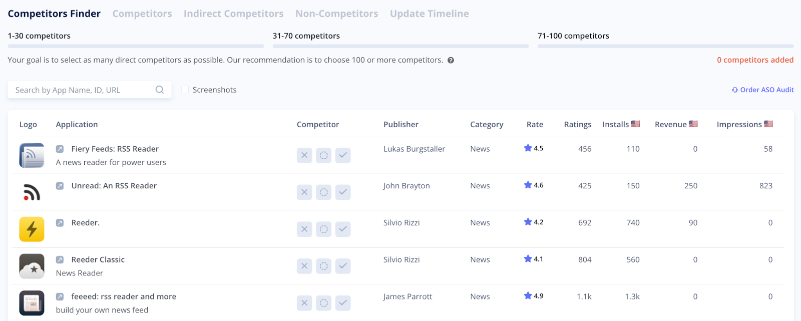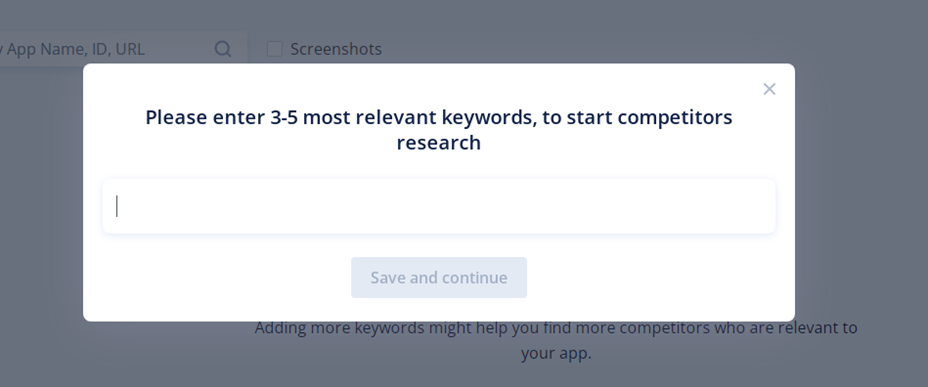 To discover competitors, enter several keywords relevant to your app. The tool will automatically select all similar apps.