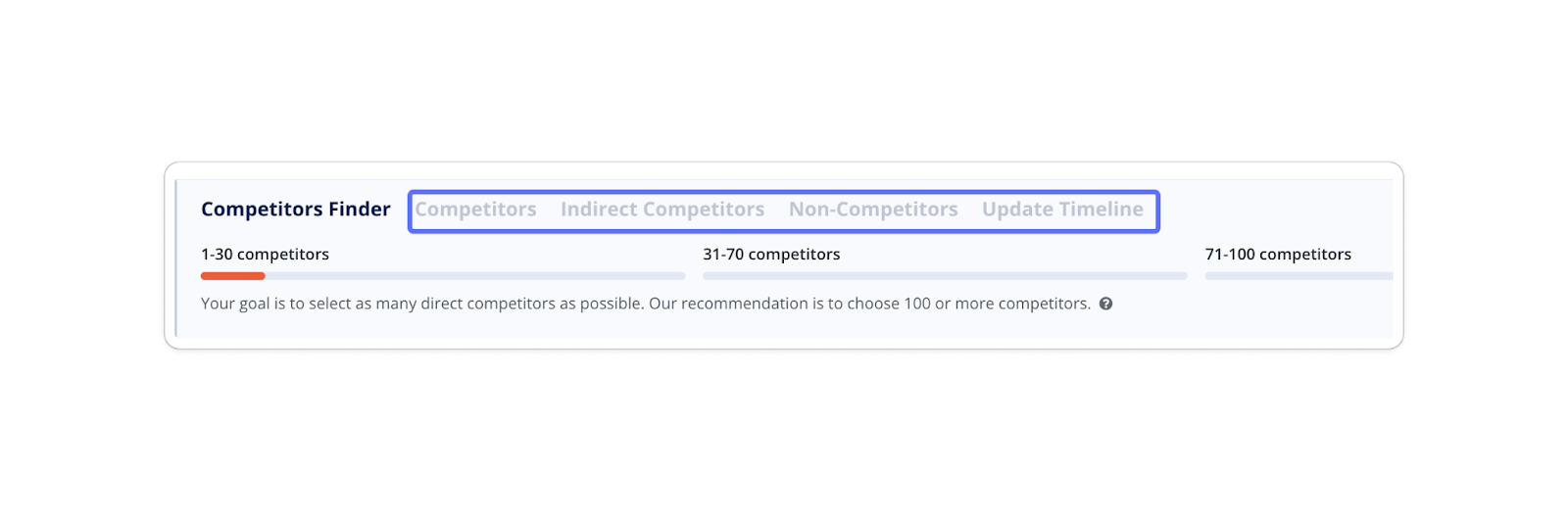 At the top of the page, you'll see a progress bar that shows how many direct competitors you've already marked.