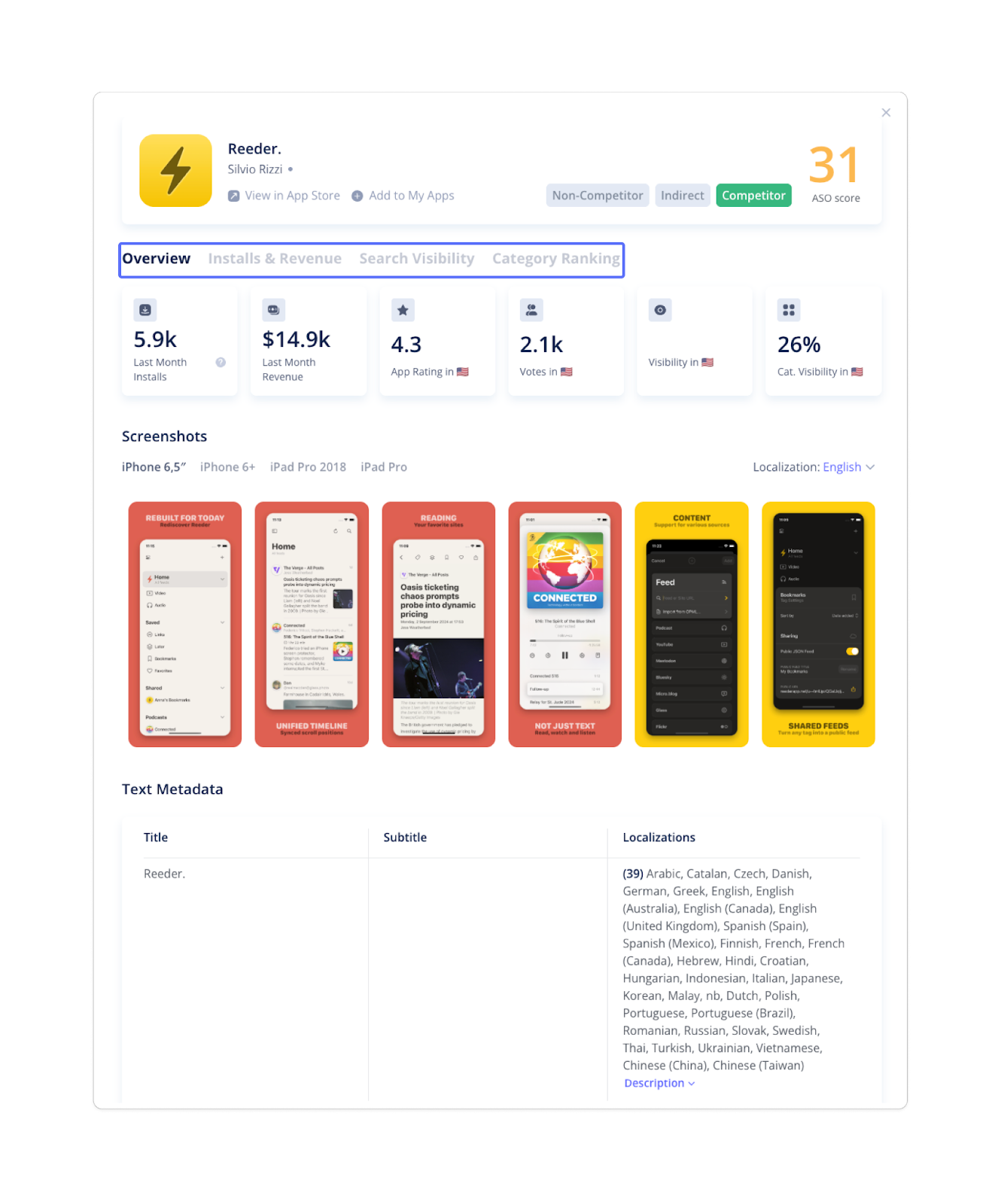 Finding the right competitors is essential because they are the best source of keyword ideas. Plus, they define how app store algorithms show your app according to the search terms. Competitors already rank for the queries your audience is searching. By analyzing them, you get: