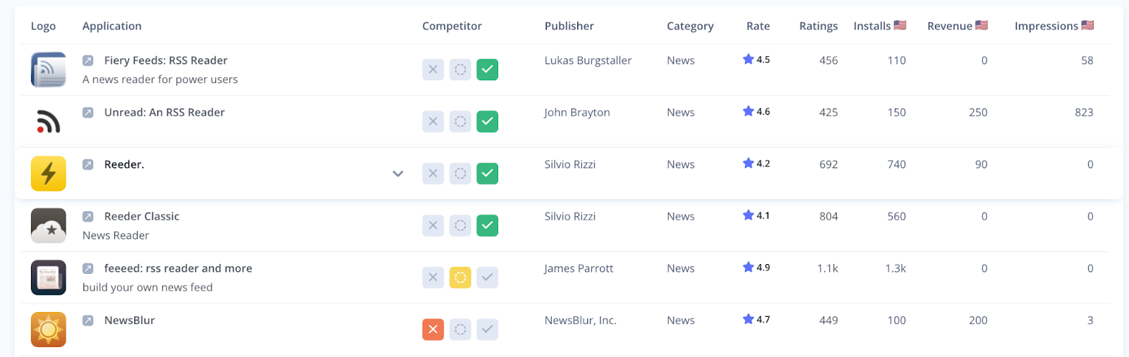 Note: The more competitors you add, the more accurate your future analysis will be. Still, focus on real rivals in your niche – don't choose random apps.