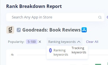 Also, you can select which keyword type the chart displays: ranking or tracking. Ranking keywords are all the terms your app ranks for. Tracking keywords are only the terms you actively monitor.