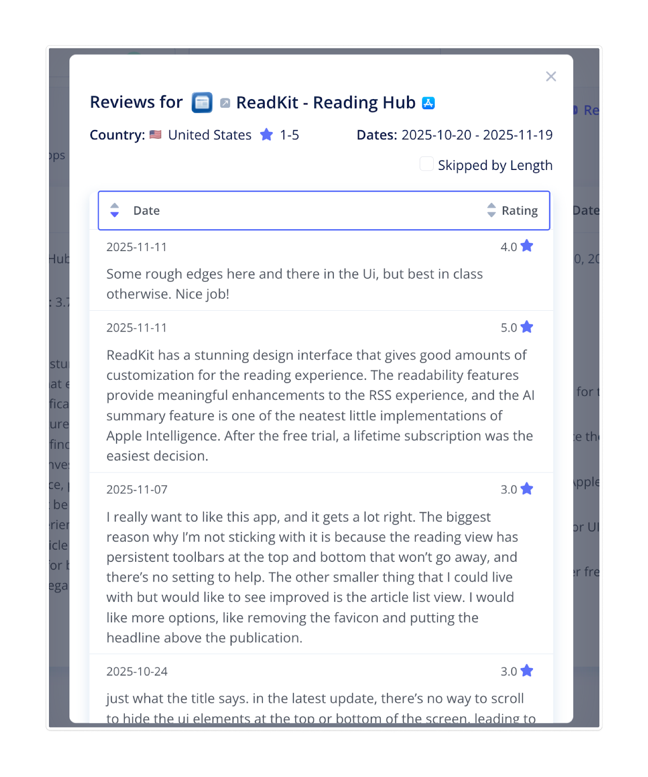 Pro Tip: Click the number of analyzed reviews to view them individually. You can sort them by date or rating.