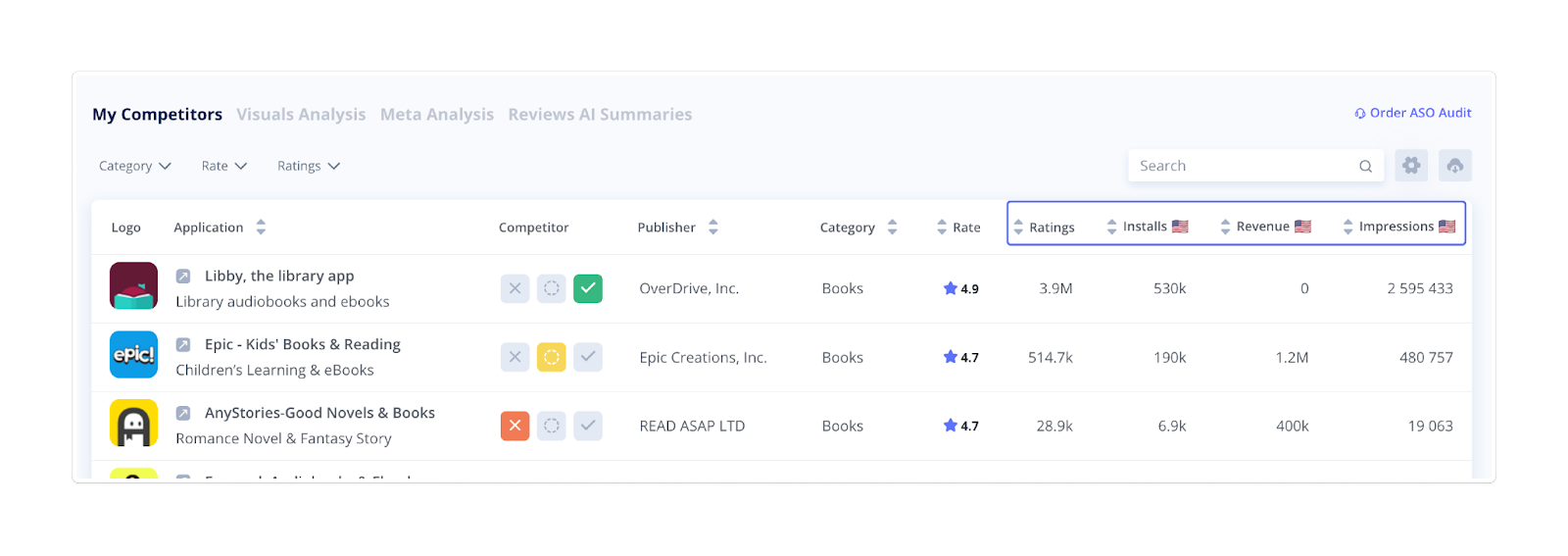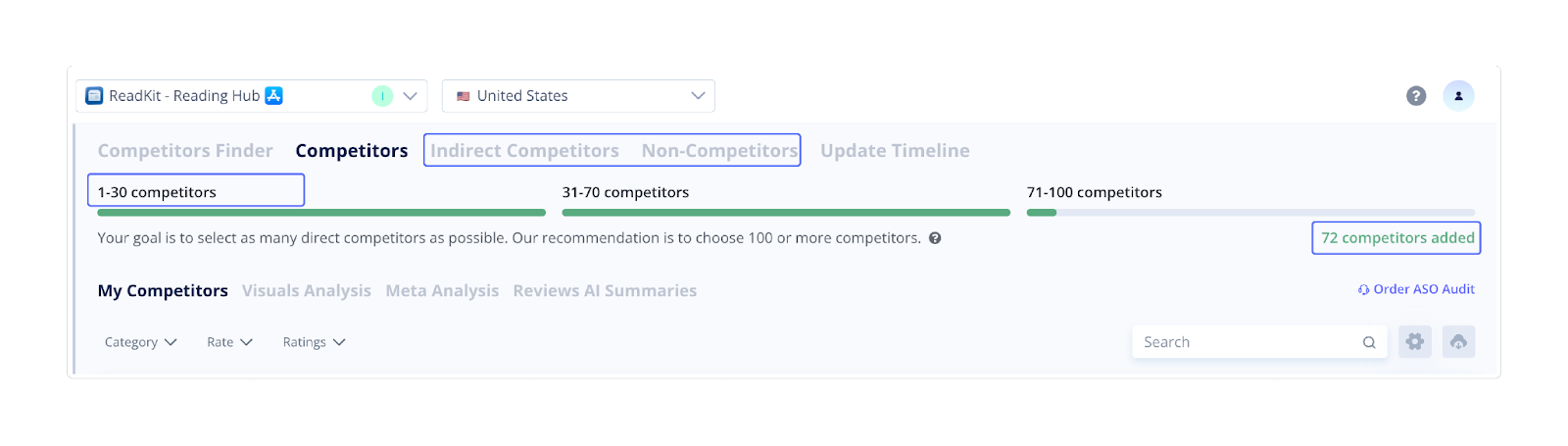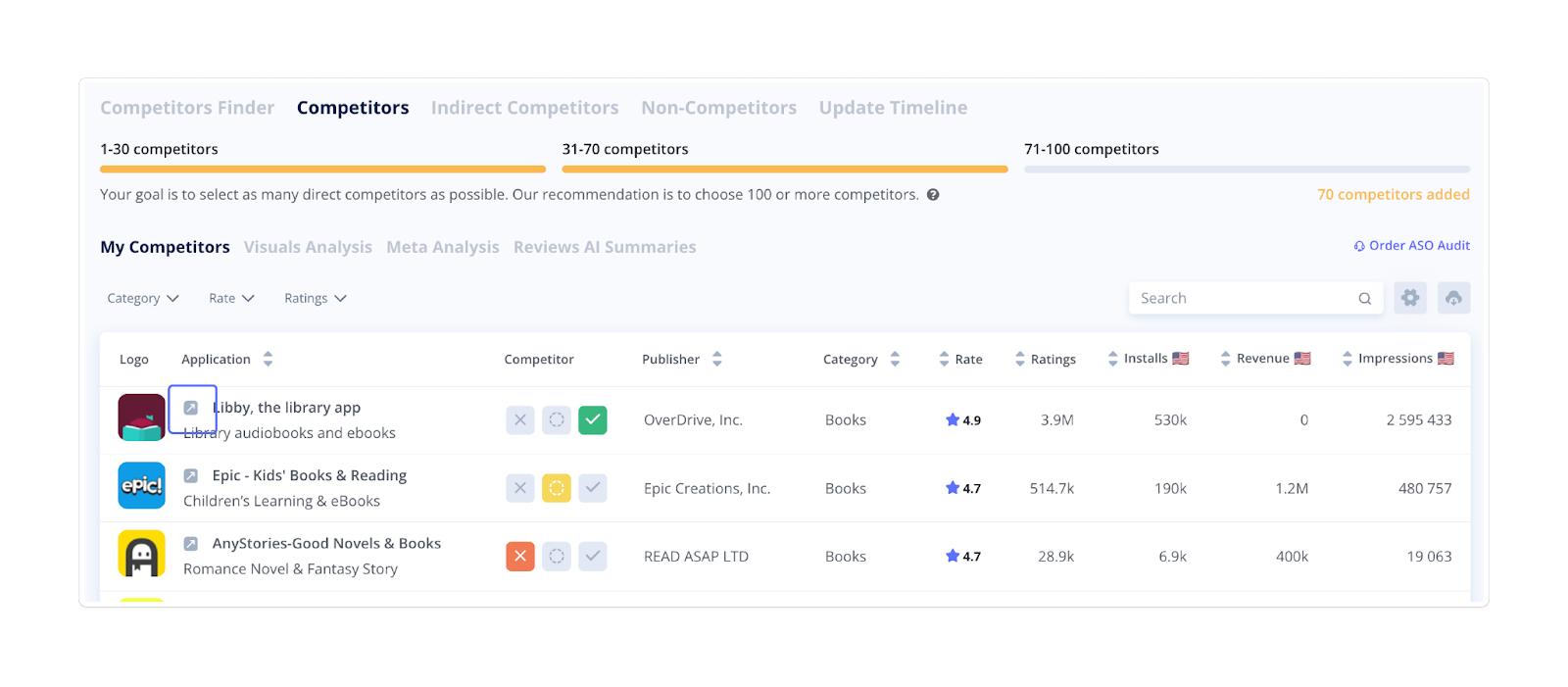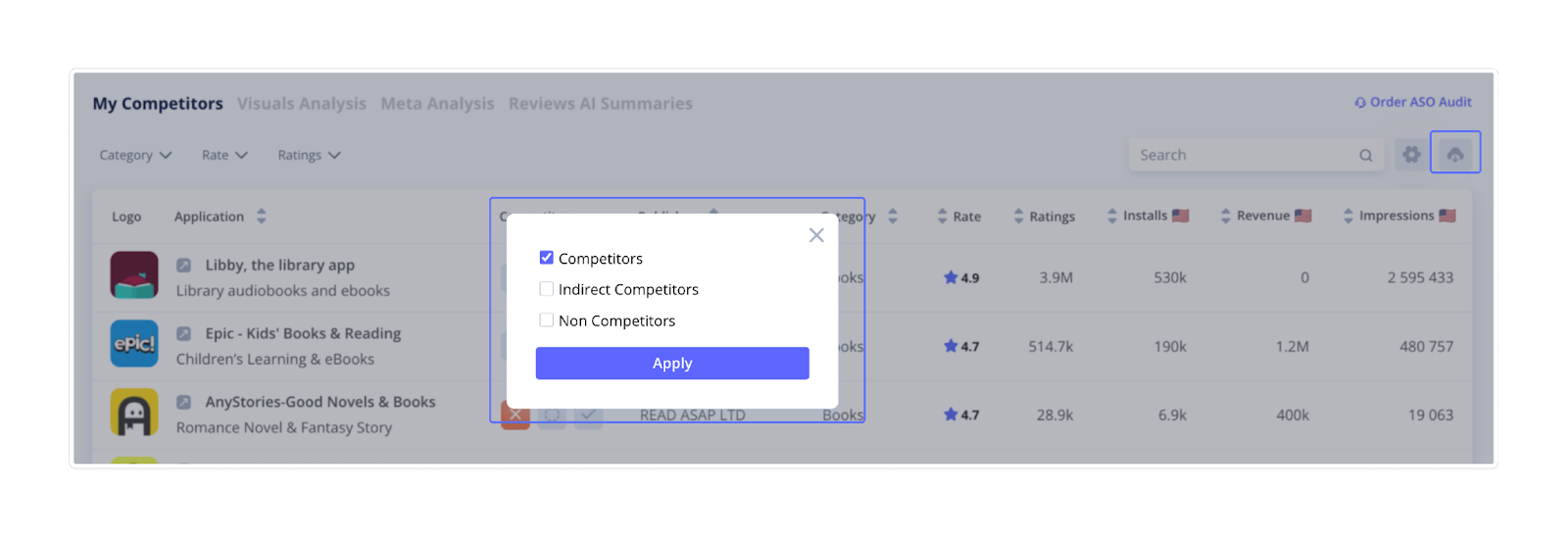 Goal: Benchmark your app against direct competitors to improve your ASO strategy.