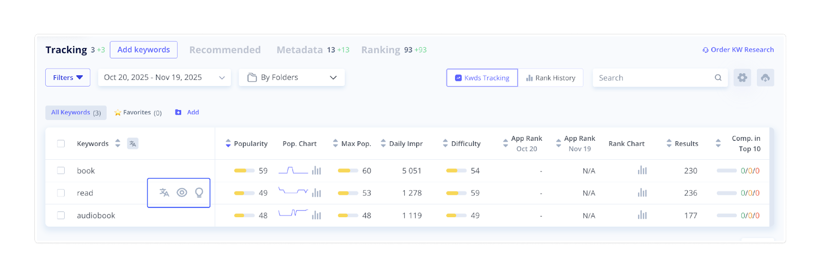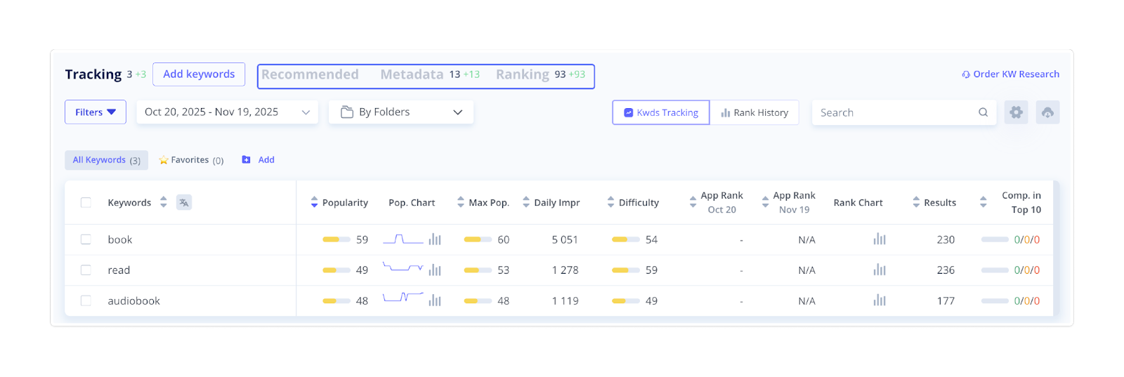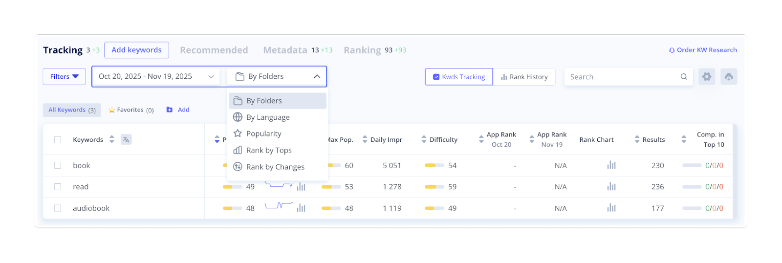 Tracking helps you understand which keywords actually drive visibility and downloads. By monitoring performance trends, you can focus on the most effective search terms and continuously refine your app's metadata strategy based on real data.